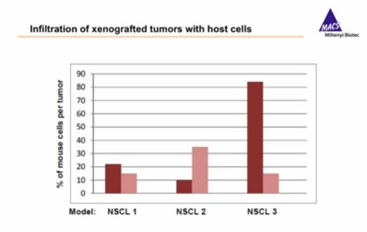 非小细胞肺癌(NSCL) PDX model,不同肿瘤组织存在着不定程度的小鼠细胞量。