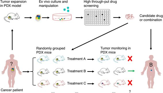 面对如此难题,科学家们开发出人源肿瘤组织来源移植瘤模型 (patient derived xenograft, PDX) ;通过将病人新鲜的肿瘤组织直接移植到免疫缺陷小鼠体内而建立的肿瘤模型,建成的这个模型保留了这个肿瘤患者的组织型和遗传学的特征,并且维持了肿瘤的异质性。这种模型跟临床的药效学结果有极高的相关性(~90%),所以它们被广泛的应用到药物研发当中。接下来,培镨生物为您介绍关于PDX更多知识。