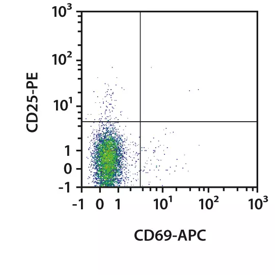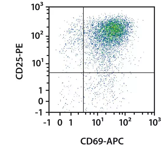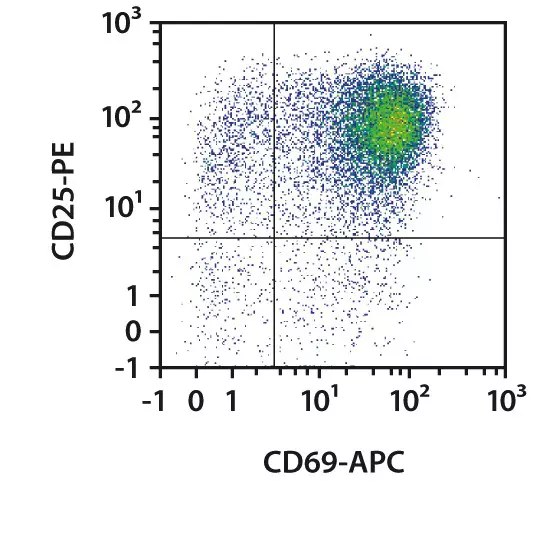使用Pan T细胞分离试剂盒分离纯化人T细胞,使用T Cell TransAct™(滴度1:100)在添加人IL-2 (20 IU/mL)的TexMACS™培养基中活化48小时。阴性对照实验在不添加T细胞交易的情况下进行。使用CD25-PE和CD69-APC对细胞进行荧光染色,并使用MACSQuant®分析仪进行流式细胞术分析。CD4-VioBlue®用于T辅助细胞的筛选,CD8-VioGreen™用于细胞毒性T细胞的筛选。根据散射信号,死亡细胞和碎片被排除在分析之外。