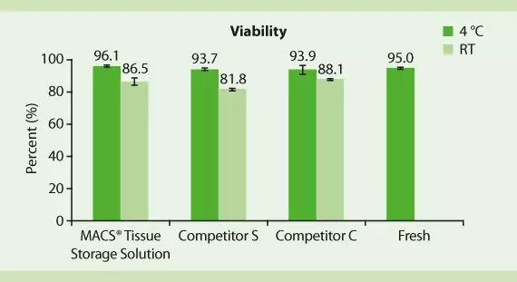 图2.MACS组织存储液与竞争对手的细胞活力比较。