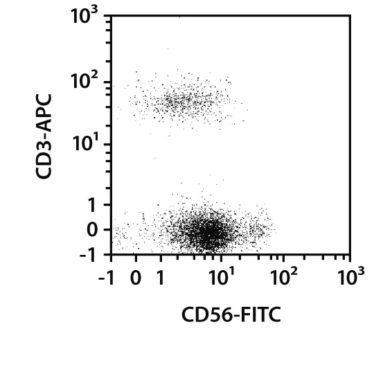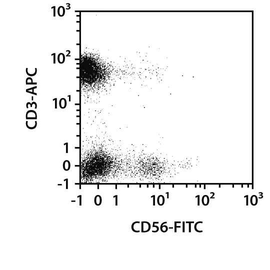 CD56抗原在大多数NK细胞和一小部分T细胞中表达。活化NK细胞后,CD56的表面表达增加。