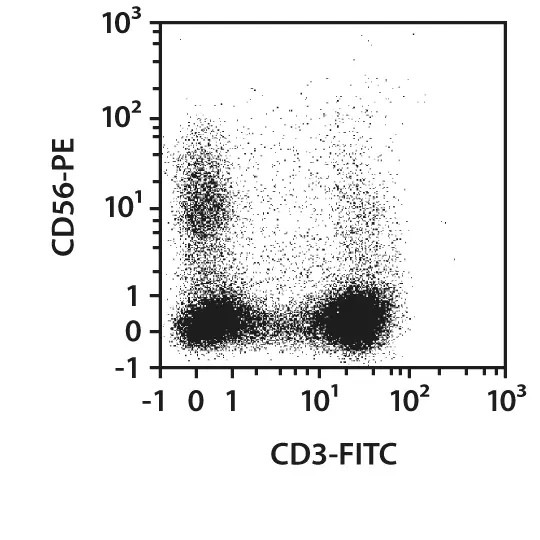 使用MACSxpress® LRSC Pan T Cell Isolation Kit, human、MACSmix™管旋转器和MACSxpress分离器,从30ml LRSC样品中分离未标记的pan T细胞。分离的细胞用CD45 - VioBlue®、CD3 - FITC和CD56-PE进行荧光染色,并使用MACSQuant®Analyzer 10进行流式细胞术分析。基于CD45表达、散射信号和碘化丙啶荧光,排除细胞碎片、非白细胞和死细胞。