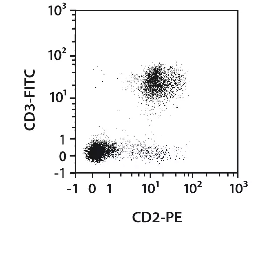 使用Pan T Cell Isolation Kit,human,LS柱和MidiMACS™分离器,通过去除非T细胞,从pbmc中分离未标记的T细胞。细胞用CD2-PE和CD3-FITC标记,使用MACSQuant®分析仪进行流式细胞术分析。