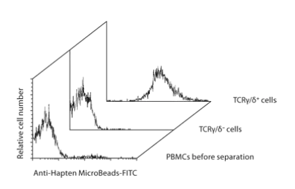 Anti-TCRγ/δ MicroBead Kit由半抗原偶联的Anti-TCRγ/δ抗体和fitc偶联的Anti-Hapten MicroBeads组成。TCRγ/δ在高达10%的外周血T细胞上表达。